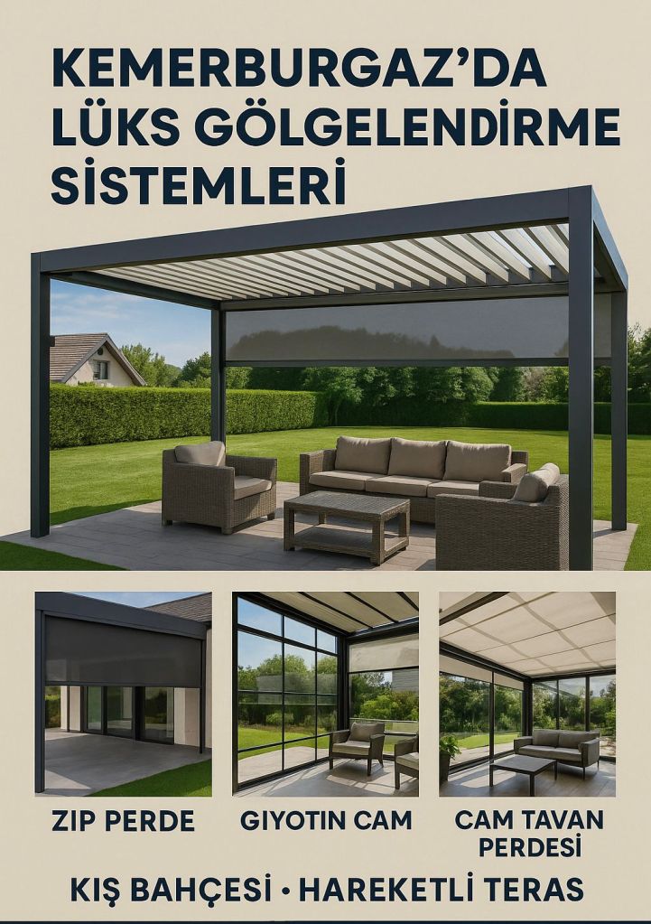 Kemerburgaz gibi üst segment bölgelerde, yaşam alanlarına değer katan gölgelendirme sistemleri, sadece bir ürün değil, bir yaşam tarzıdır. Bioclimatic pergoladan Zip perdeye, Giyotin camdan kış bahçesine kadar sunduğumuz tüm çözümler, sizi doğayla uyumlu, konforlu ve prestijli bir yaşama davet ediyor.